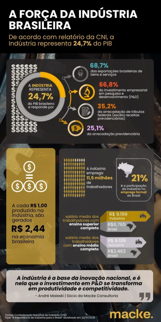 Como reforça Brendo Ribas, também sócio da Macke: “A indústria é o ponto de encontro entre tecnologia e trabalho qualificado. É um setor que não só impulsiona o PIB, mas cria oportunidades reais de desenvolvimento profissional e de ascensão econômica. A inovação começa nas empresas, mas seu impacto reverbera na sociedade.”