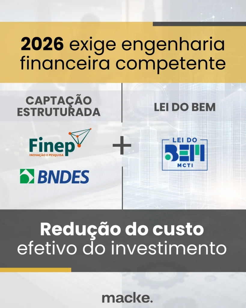 Esse ambiente reforça um ponto central: investir em inovação deixa de ser apenas uma decisão estratégica de longo prazo e passa a ser uma decisão financeira que exige estrutura.