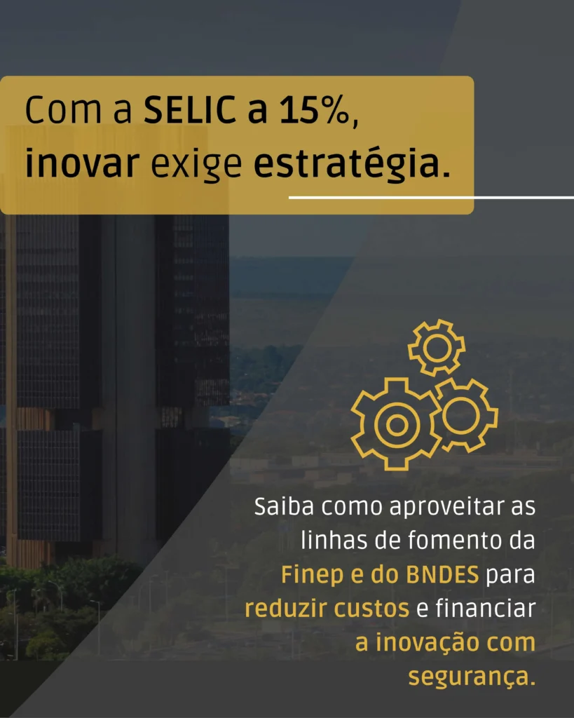 | Mercado Tradicional | Selic (15%) + Spread Bancário (5-10%) = 20-25% a.a. | Baixa: Inviável para a maioria dos projetos de P&D de longo prazo. |