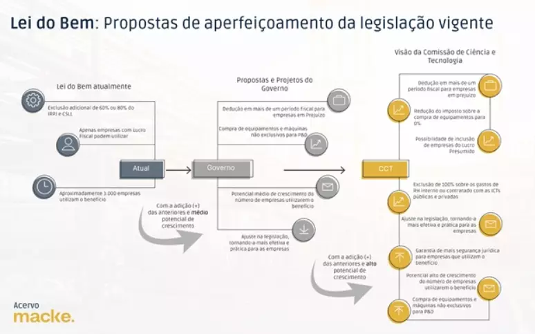 A Lei do Bem é o principal incentivo fiscal para inovação tecnológica do Brasil e permite que empresas que investem em ciência em tecnologia deduzam despesas e investimentos através de abatimentos imposto de Renda Pessoa Jurídica (IRPJ) e na Contribuição Social sobre o Lucro Líquido (CSLL), bem como o Imposto sobre Produtos Industrializados (IPI) incidente na compra de equipamentos destinados a laboratórios que se concentram em estruturas de inovação.