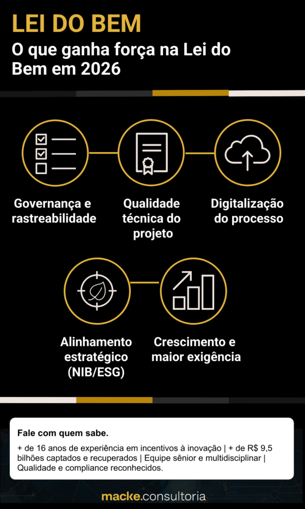 Se em anos anteriores muitas empresas viam a Lei do Bem como um “relatório anual”, a tendência é que, em 2026, ela seja tratada como um instrumento que exige qualidade técnica comparável à de projetos estruturados para fomento.
